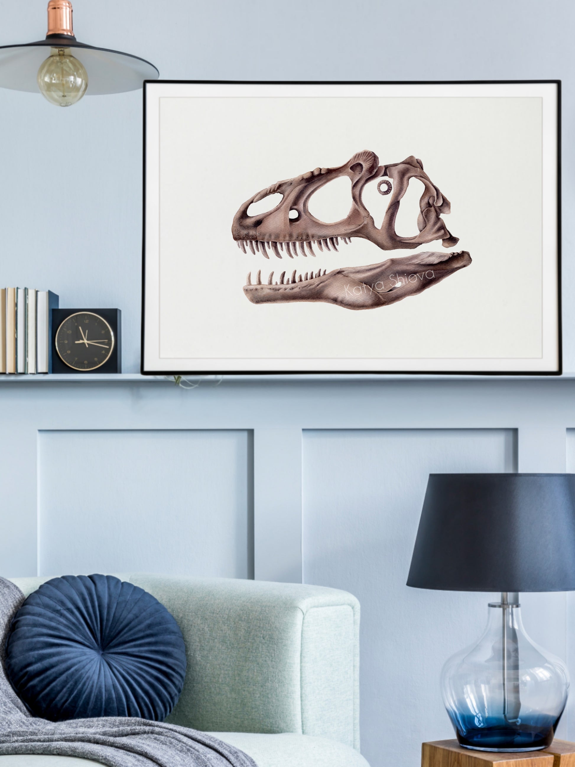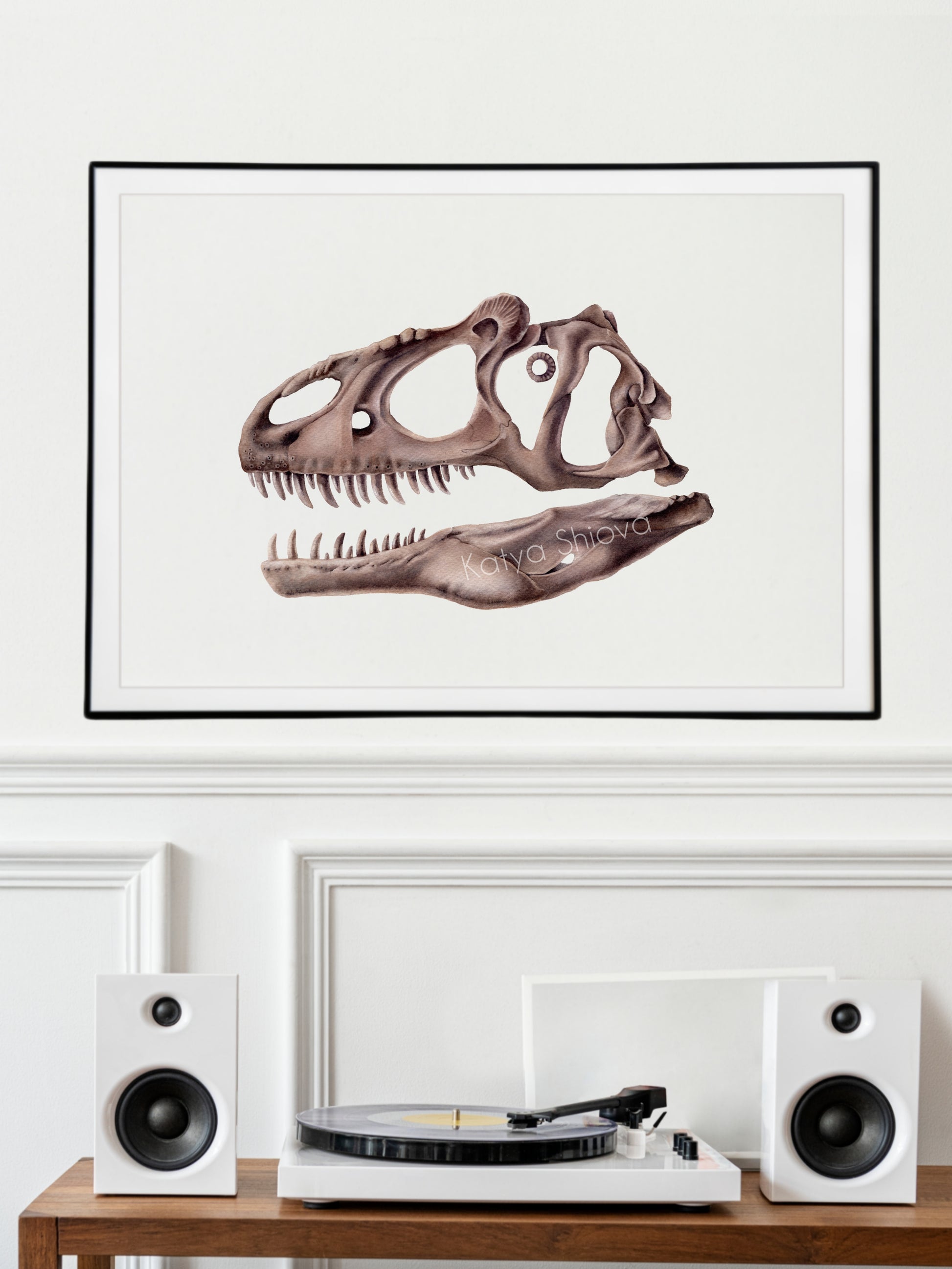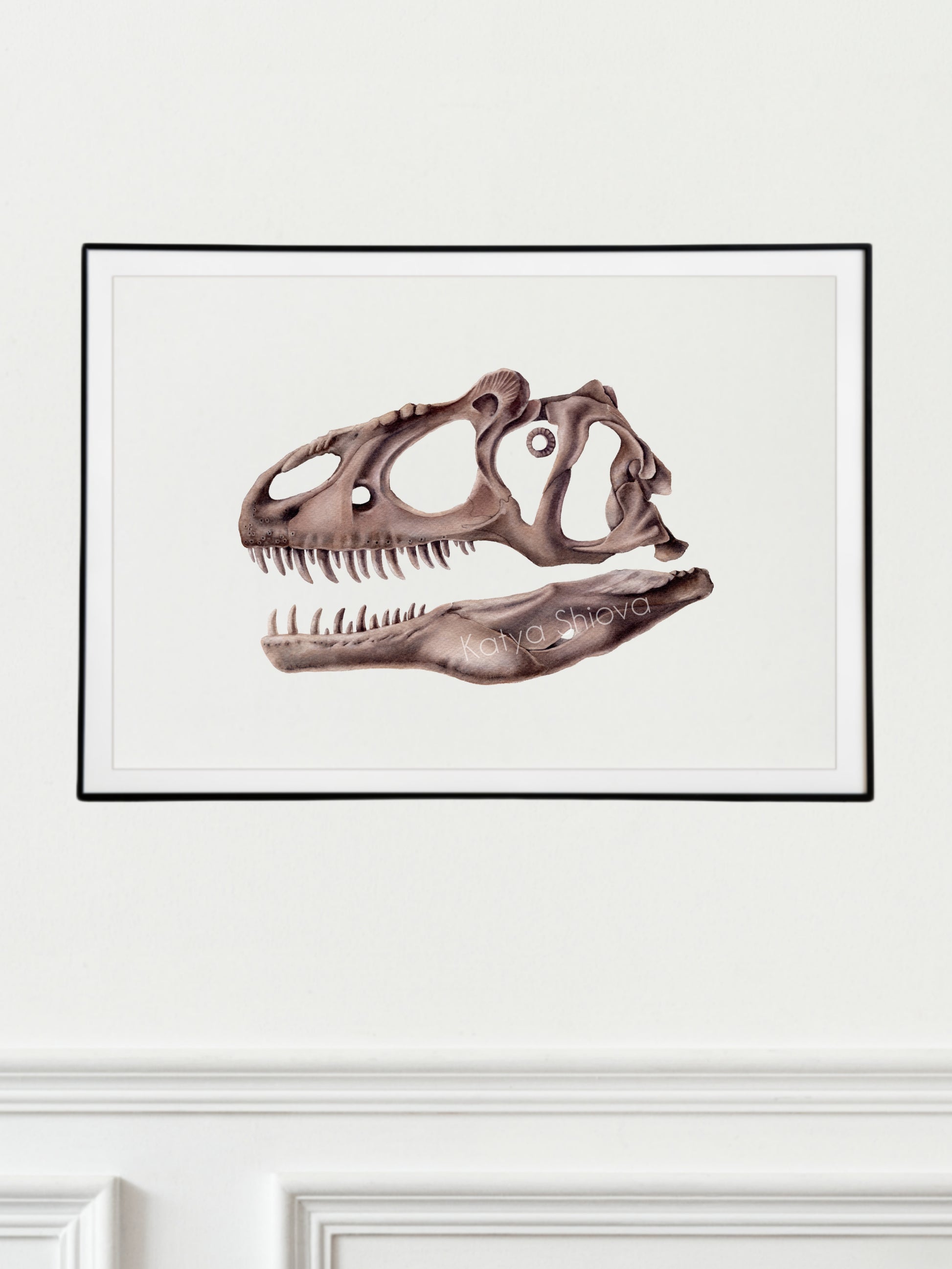 Allosaurus skull, original watercolour art