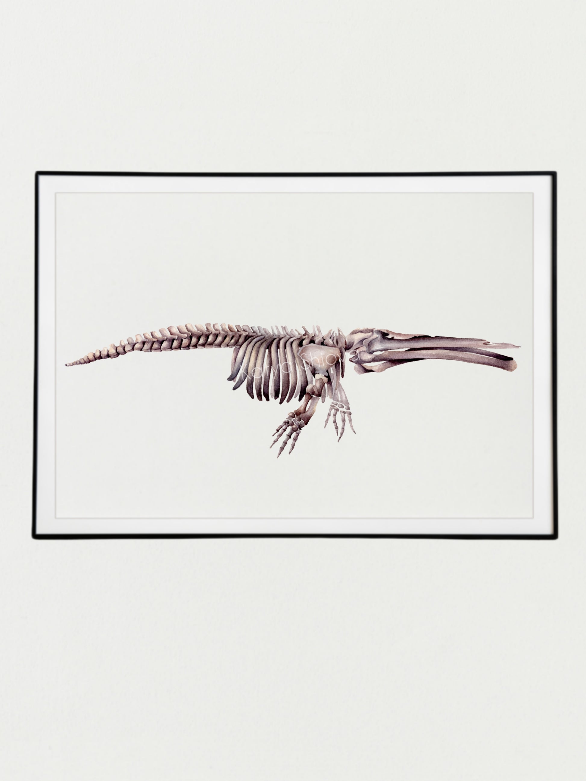 Cetotherium, skeleton of the prehistoric whale, original watercolour art