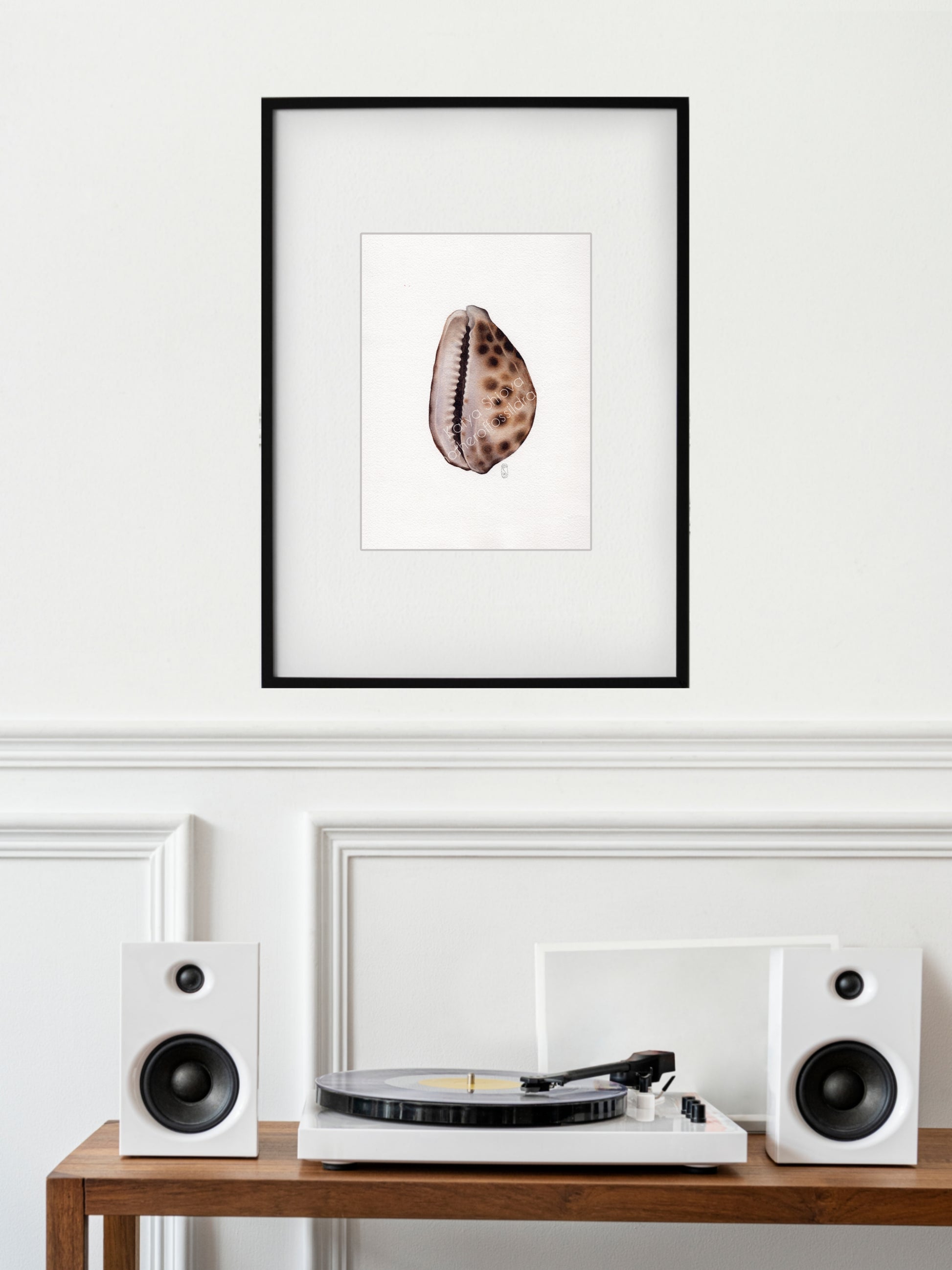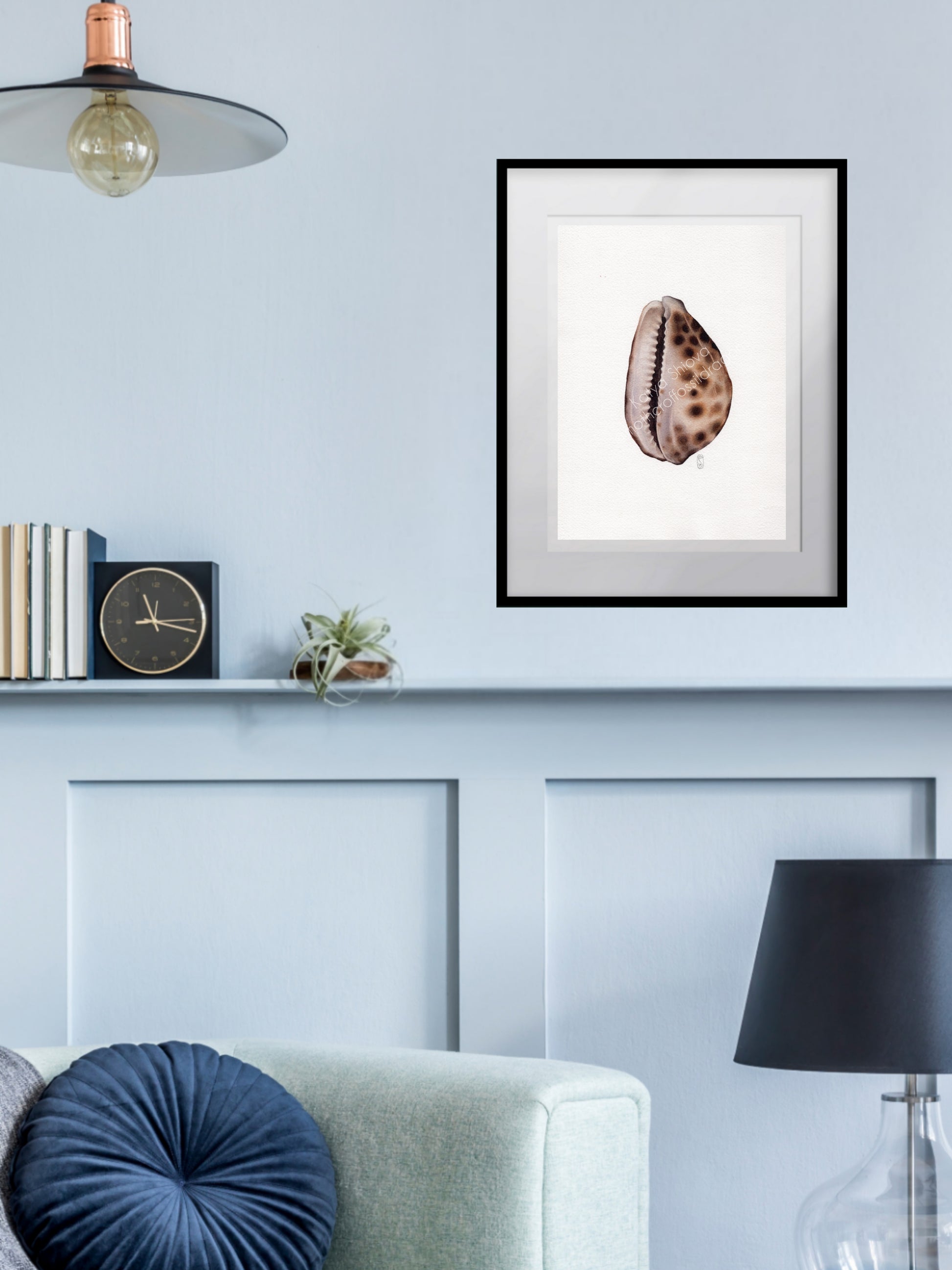 Cypraea tigris, the tiger cowrie, original watercolour art