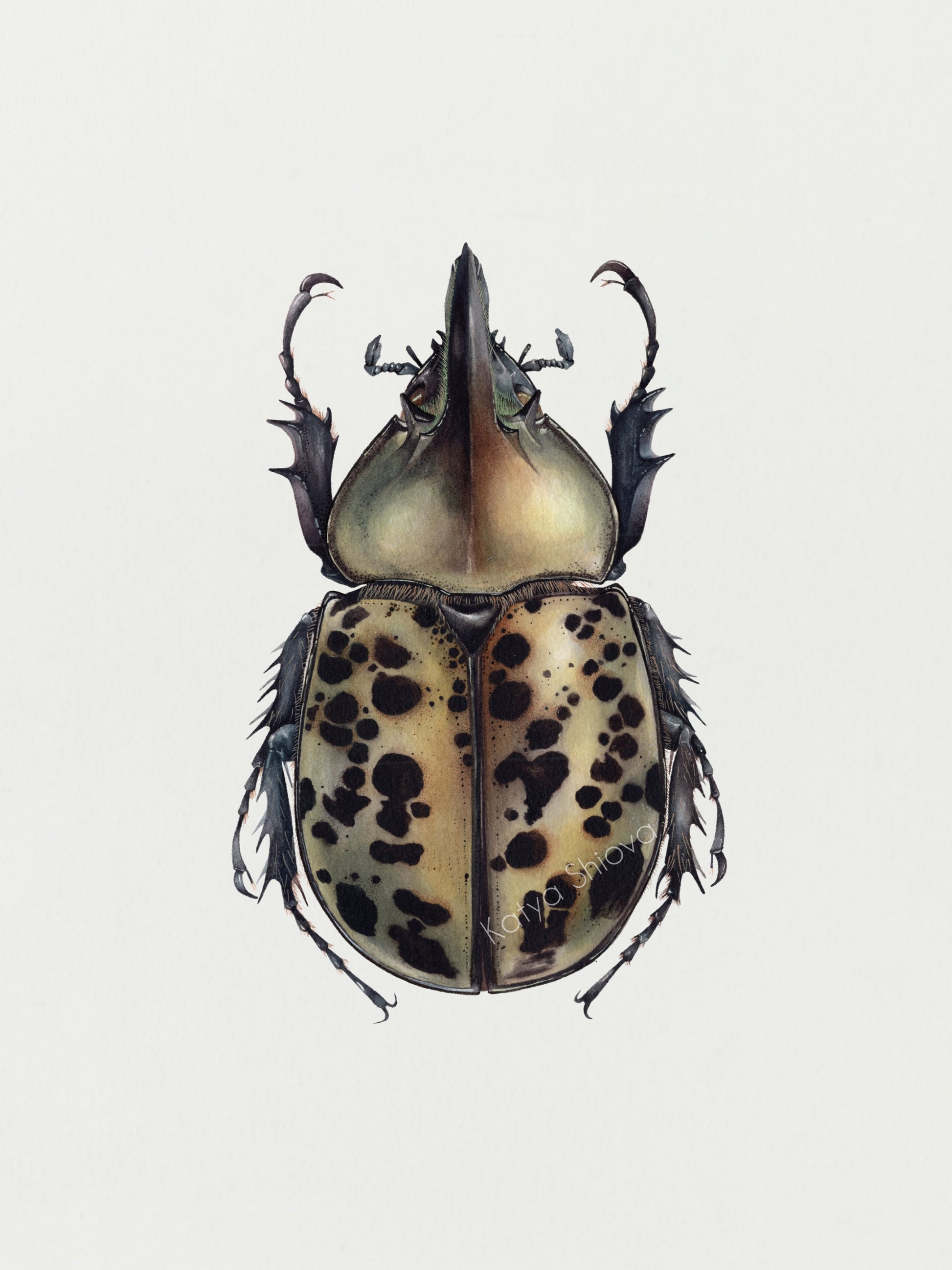 Dynastes tityus, original watercolour art