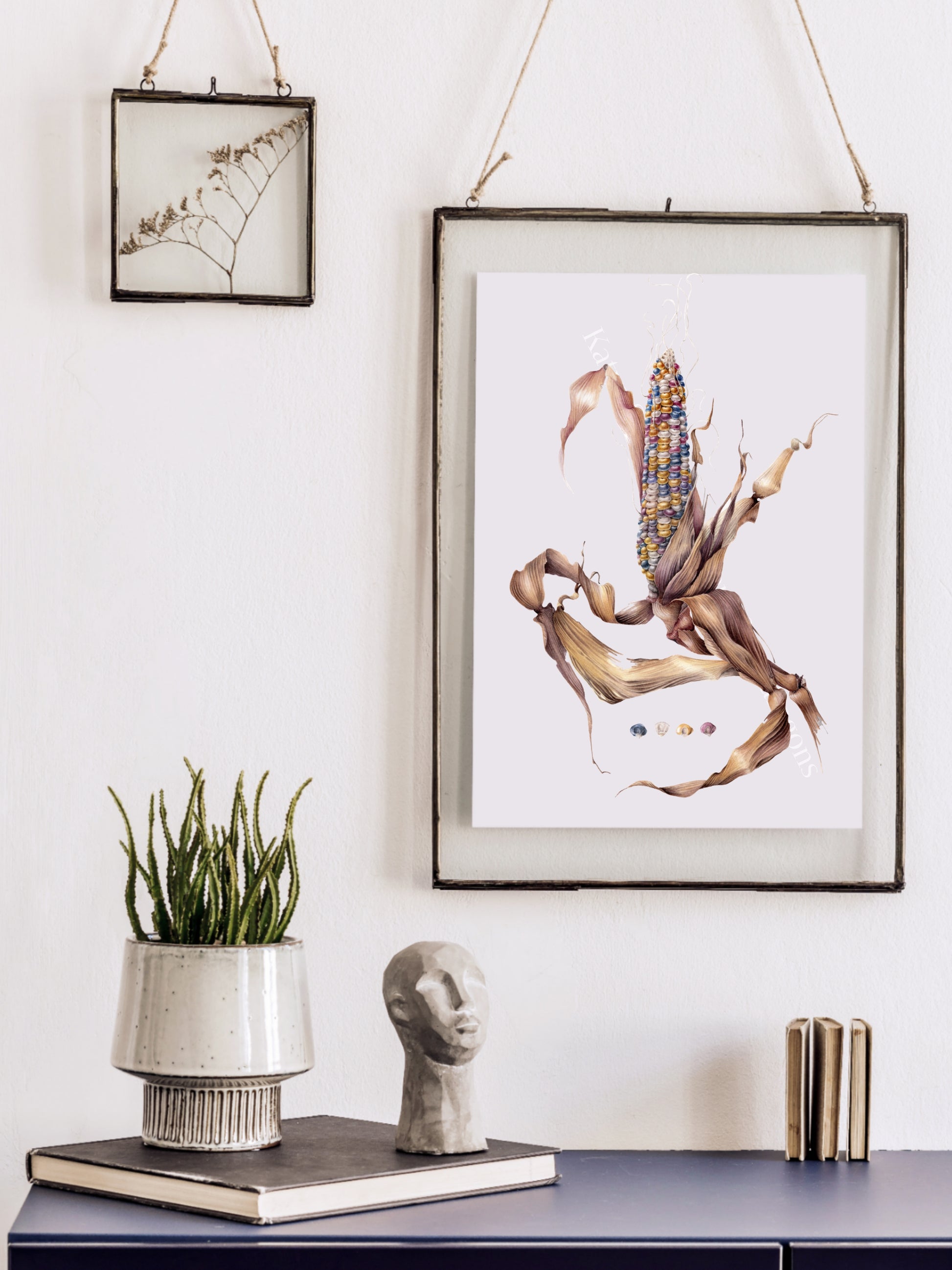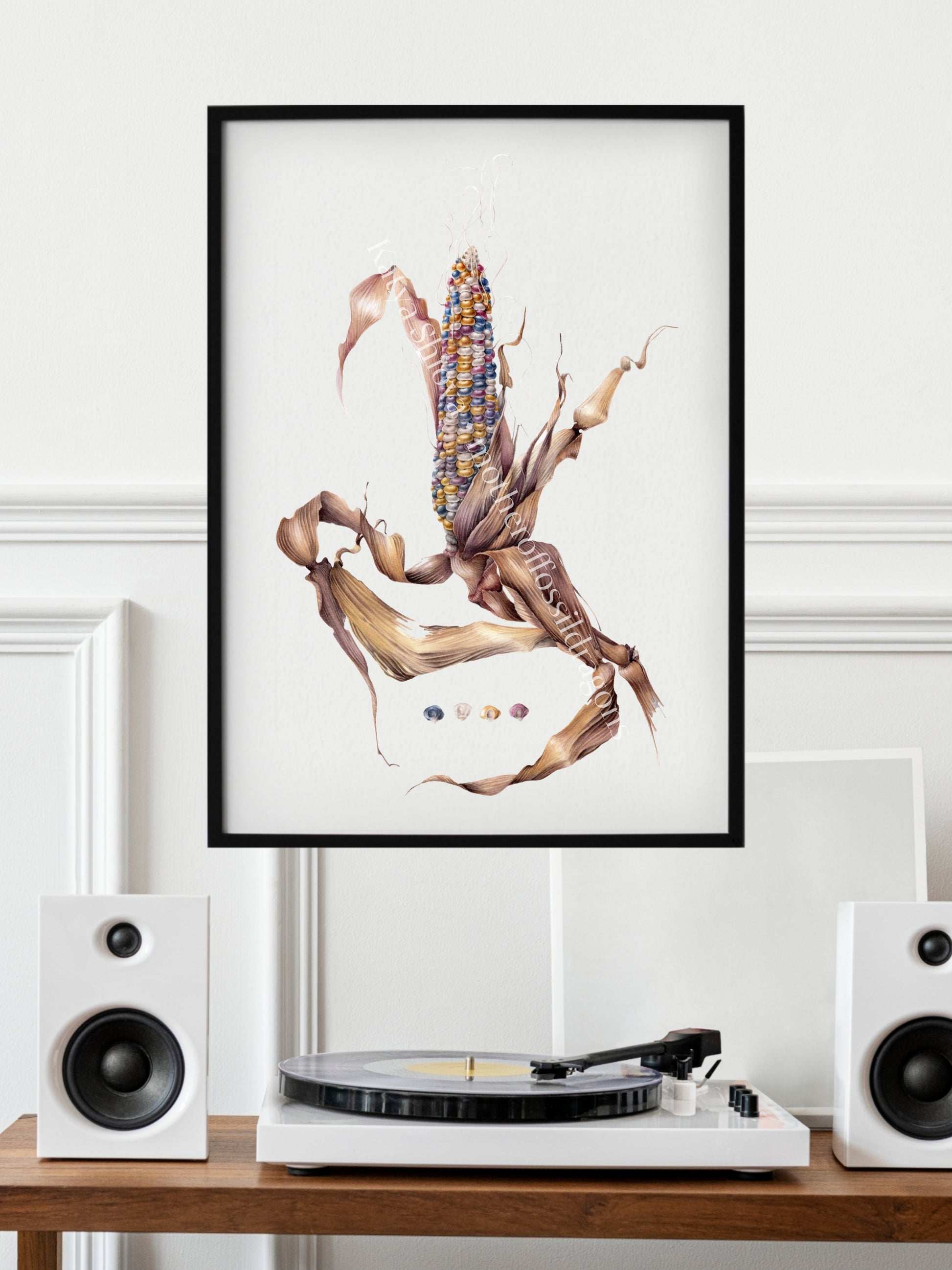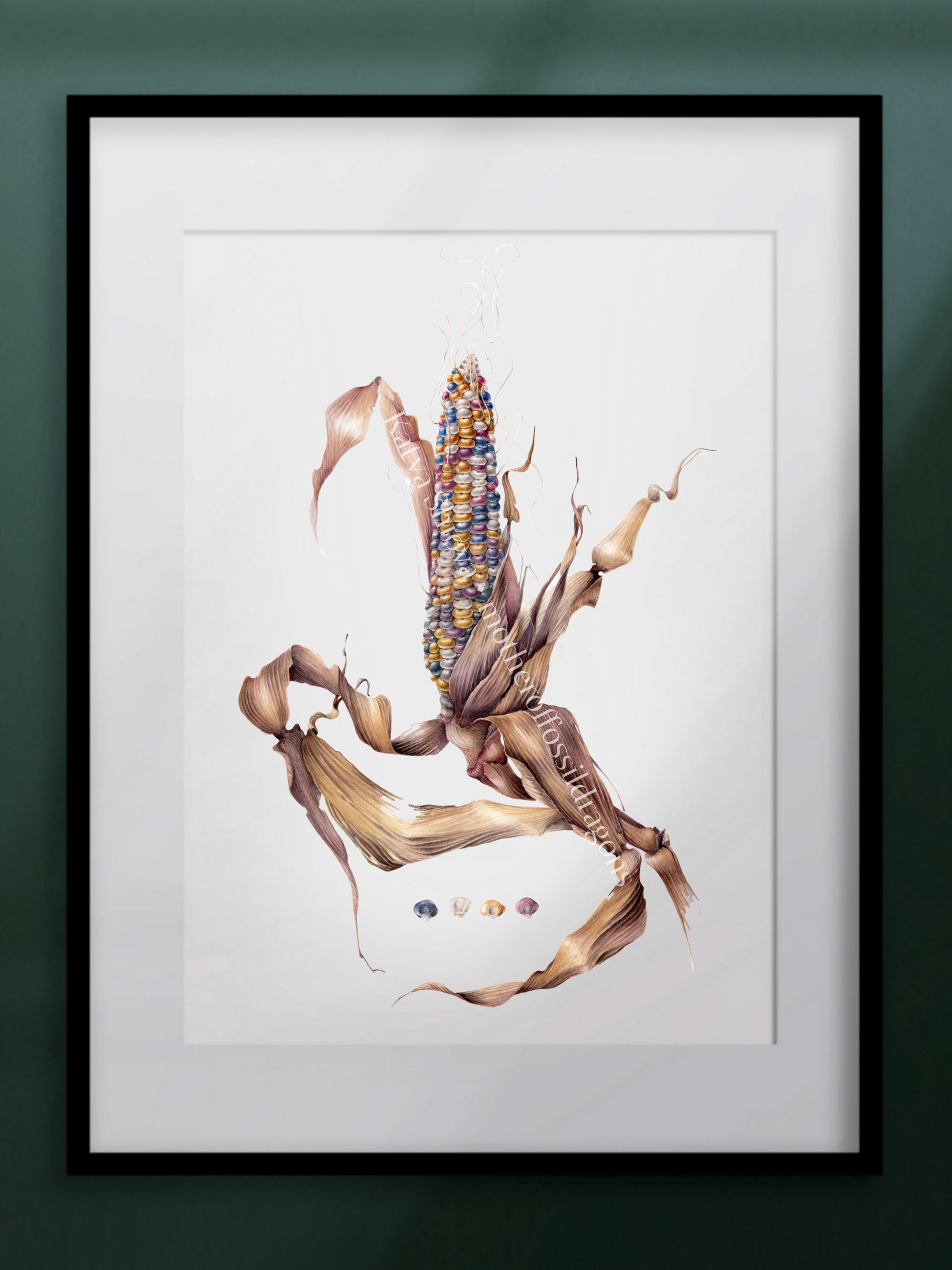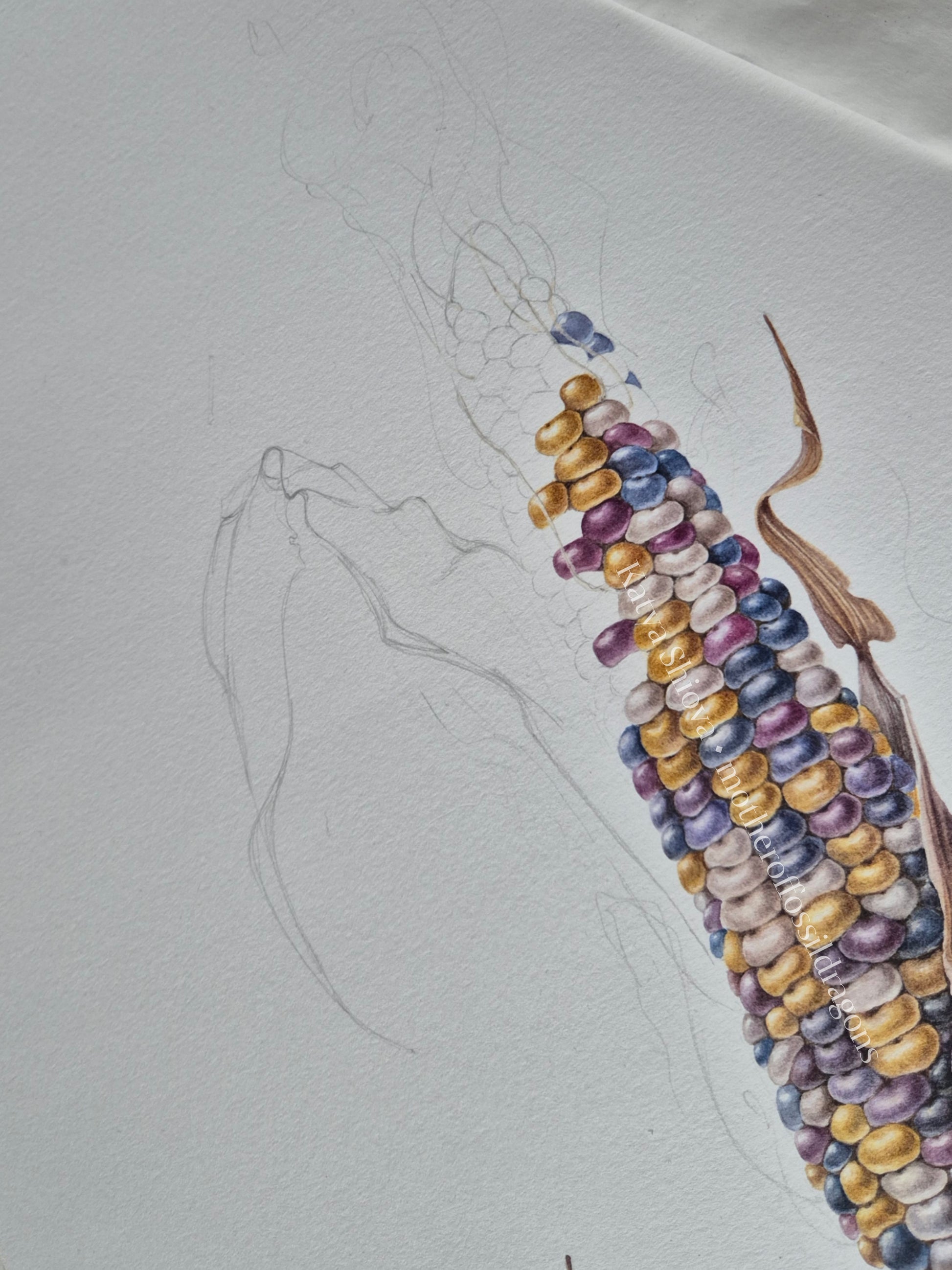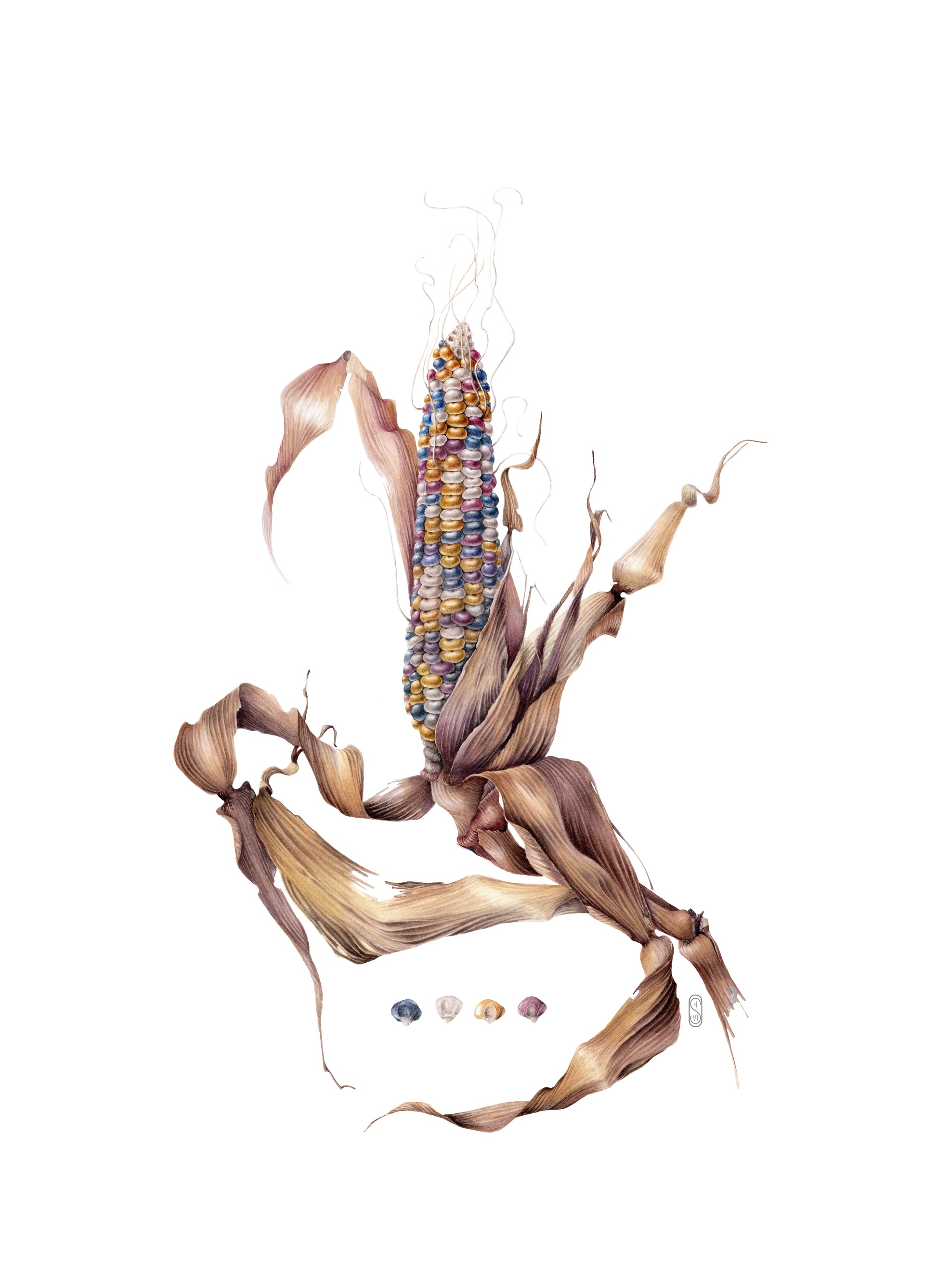 Glass Gem Corn, Zea mays, original botanical watercolour illustration