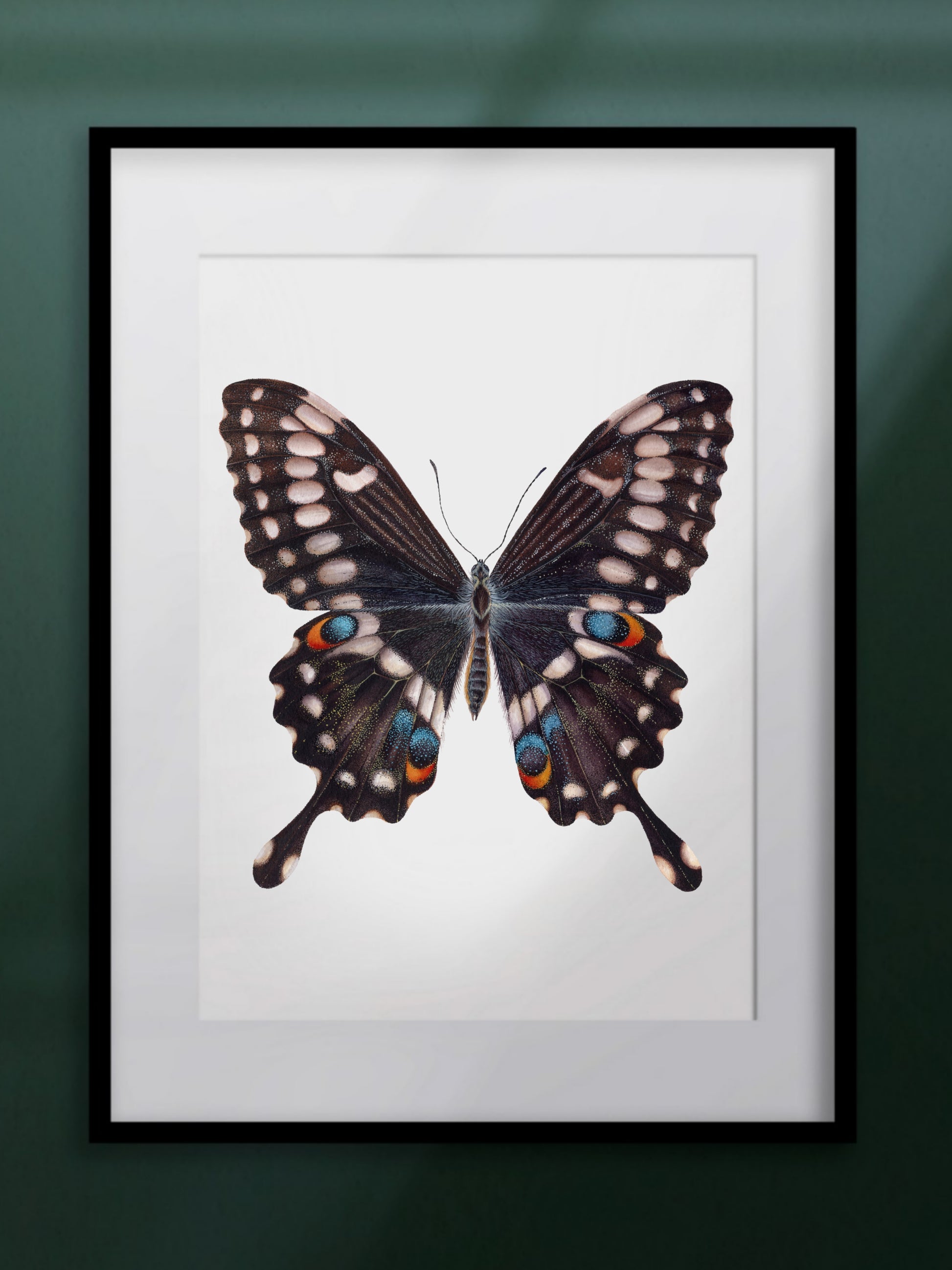 Papilio ophidicephalus, the emperor swallowtail, original watercolour art