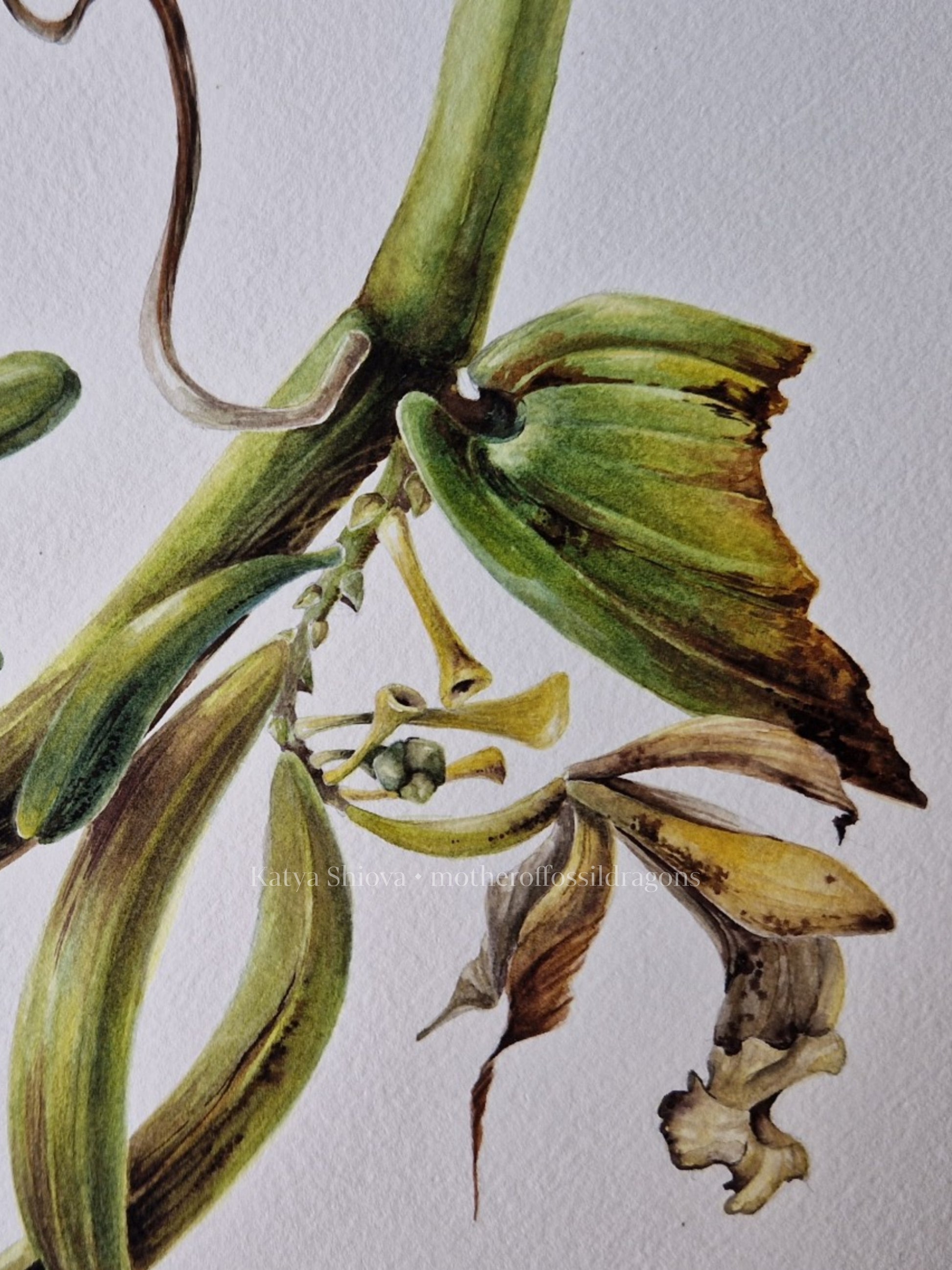 Vanilla Pompona, vanilla orchid wine, original botanical watercolour illustration